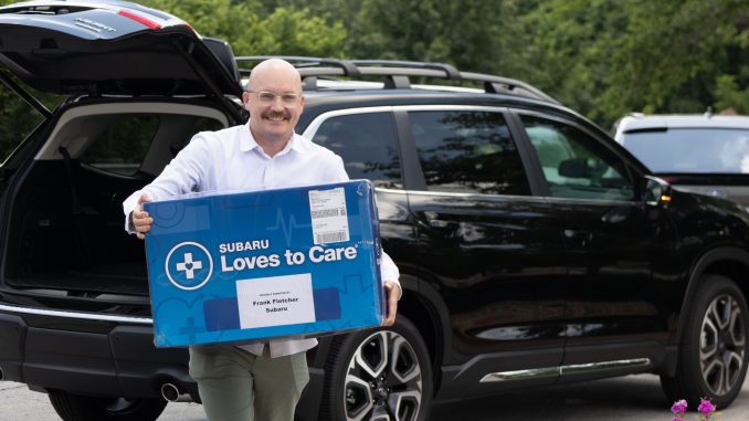 This is the 10th straight year Frank Fletcher Subaru employees, in partnership with the Leukemia and Lymphoma Society, have delivered huge blue boxes filled with the plush blankets, patient care kits, and messages of hope. These items serve as the key components of the car manufacturer’s “Subaru Loves to Care” philanthropic program, held annually in June.