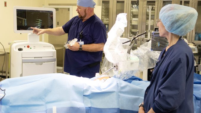 (Joplin, MO) – The relentless pursuit of technological innovation has been a traditional hallmark at Freeman Health System during its 100 years in Joplin. This was again on full display Friday afternoon as Freeman neurosurgery physicians showcased next-generation technology that serves as a key alternative to spinal fusion surgery.