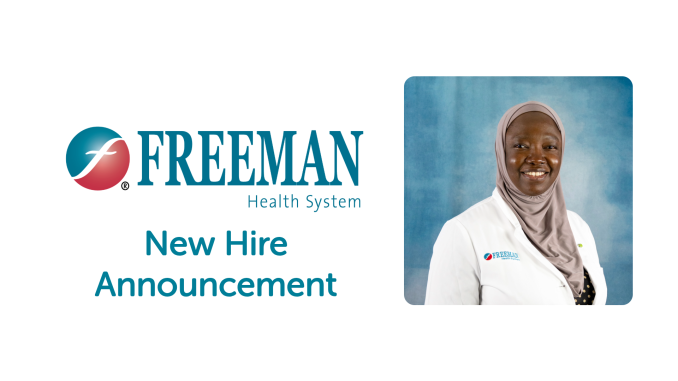 “I don’t think I could have chosen a better first job as a pediatrician,” Dr. Aliu-Ibrahim continued. “I love the sense of camaraderie that exists in the workplace here at Freeman. Even though I have only been here for a short time, I really enjoy being part of the Freeman family. To me, Freeman Health System means teamwork. No one is an island. We are all working together for the same goal of getting the best outcomes for our patients.”