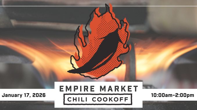 Public tasting begins at 10:30am in the Lineman’s Hall (Hall 1) — a $5 suggested donation will allow you to visit all contestants and get cups of chili to try (until supplies run out). Complementary crackers will be provided. All proceeds from the tasting will go towards the Empire Market facility, specifically this year, the “Light Up the Night” fundraising campaign designed to bring courtyard lights back to the market, so outdoor events can be held once again at night.