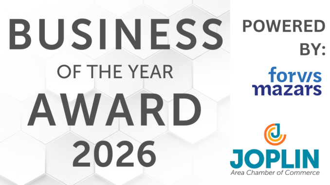 (Joplin, MO) – Nominations are now open for the 2026 Business of the Year Awards, presented by Forvis Mazars and the Joplin Area Chamber of Commerce.